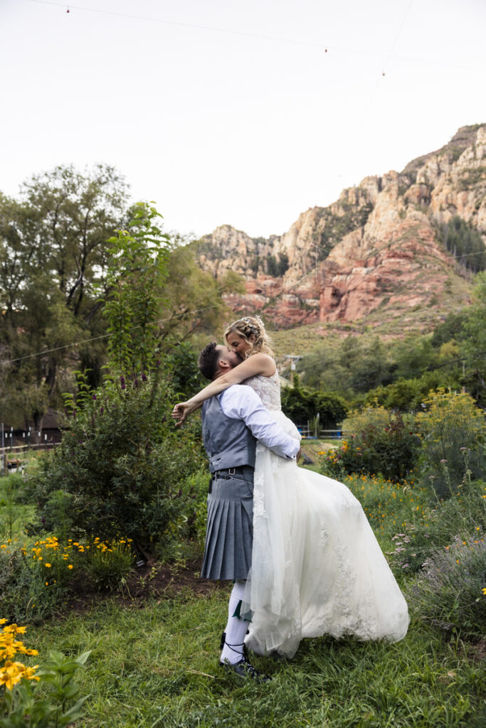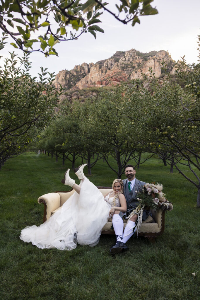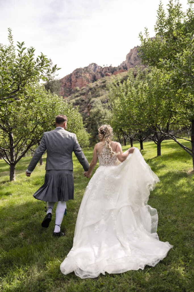 A lush apple orchard providing a romantic and rustic setting with views of the surrounding red rocks is the perfect place for a wedding ceremony.